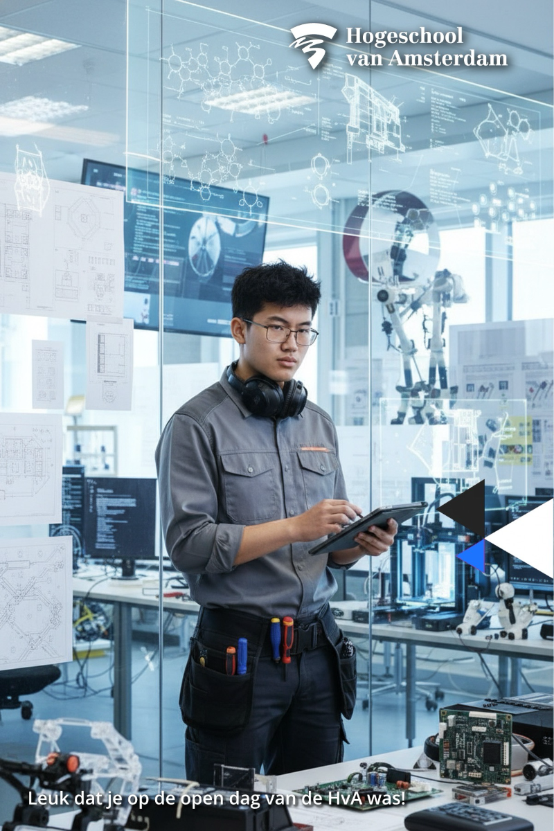Generatieve AI Photo Booth tijdens de Open Dagen van de Hogeschool van Amsterdam. Hier konden aankomende studenten een fantasievolle foto laten maken geheel in hun toekomstige beroep. Ze hadden de keuze uit 16 verschillende beroepen.