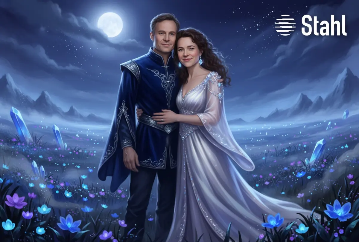 Generatieve AI Photo Booth tijdens een bedrijfsfeest van Stahl. Naast een green screen studio voor foto entertainment voor grotere groepen, hadden we ook een AI generatieve fotoset geplaatst. Hier konden kleinere groepen en duo's een fantasievolle foto laten maken. Het was een mooie foto-entertainment combinatie.