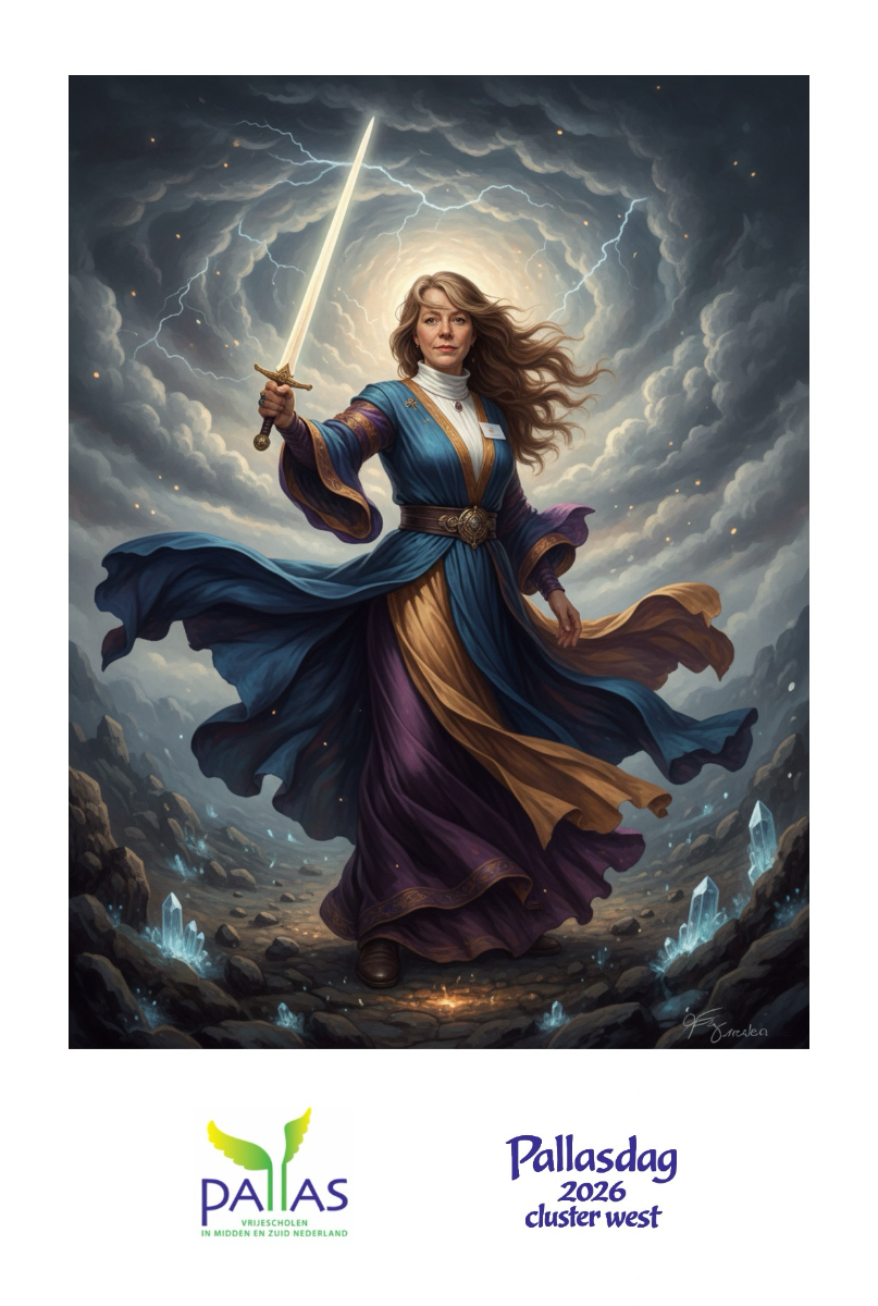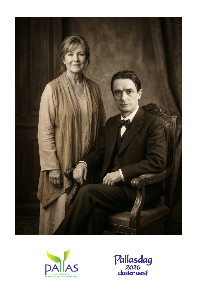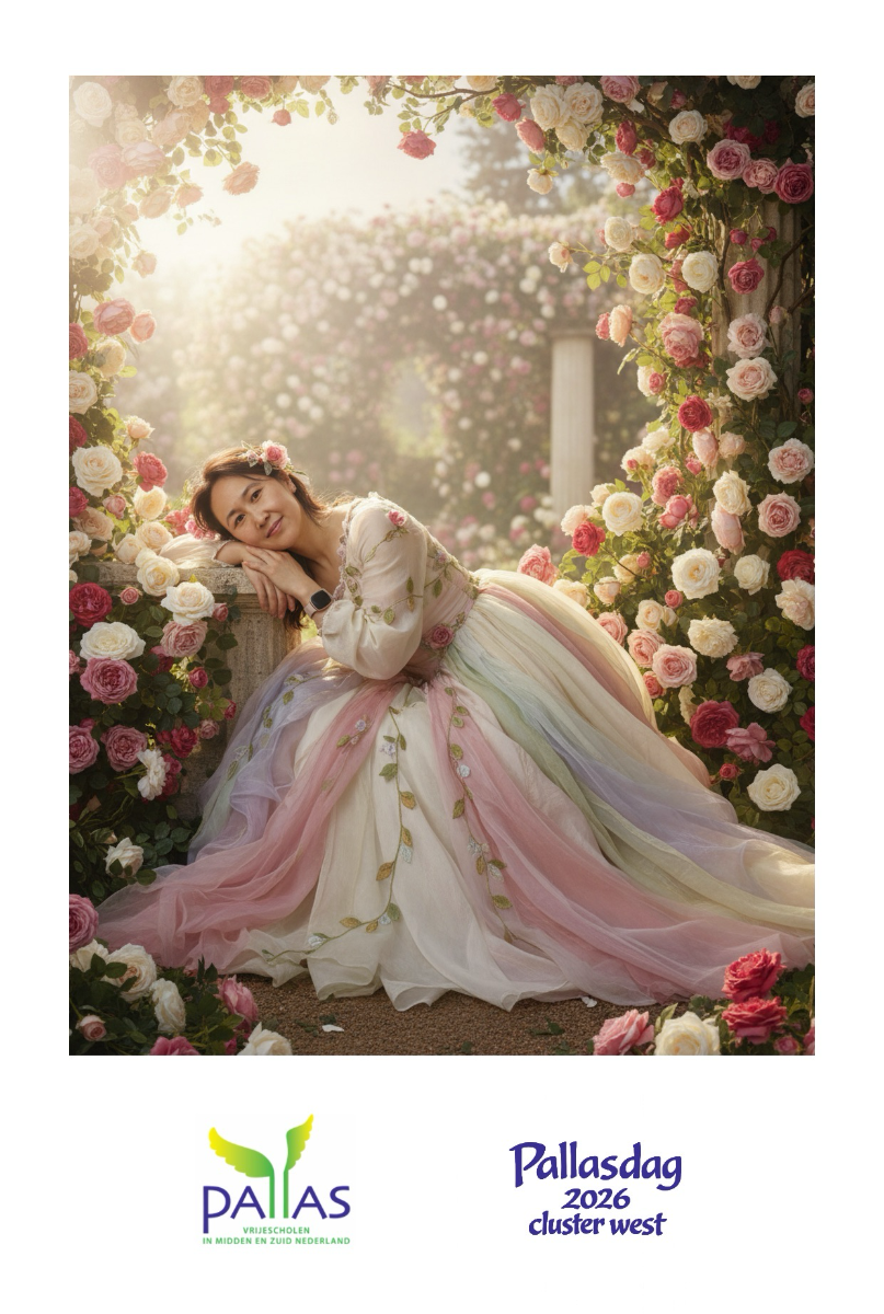 Generatieve AI Photo Booth tijdens de Pallasdag 2026 op de Vrije School de Driesprong in Den Bosch. Hier konden leraren in de pauzes op de foto in een echte Vrije School achtergrond, zoals met Rudolf Steiner, in sprookjes en mythologieën. De leraren verschenen in de mooiste kledij en achtergronden.